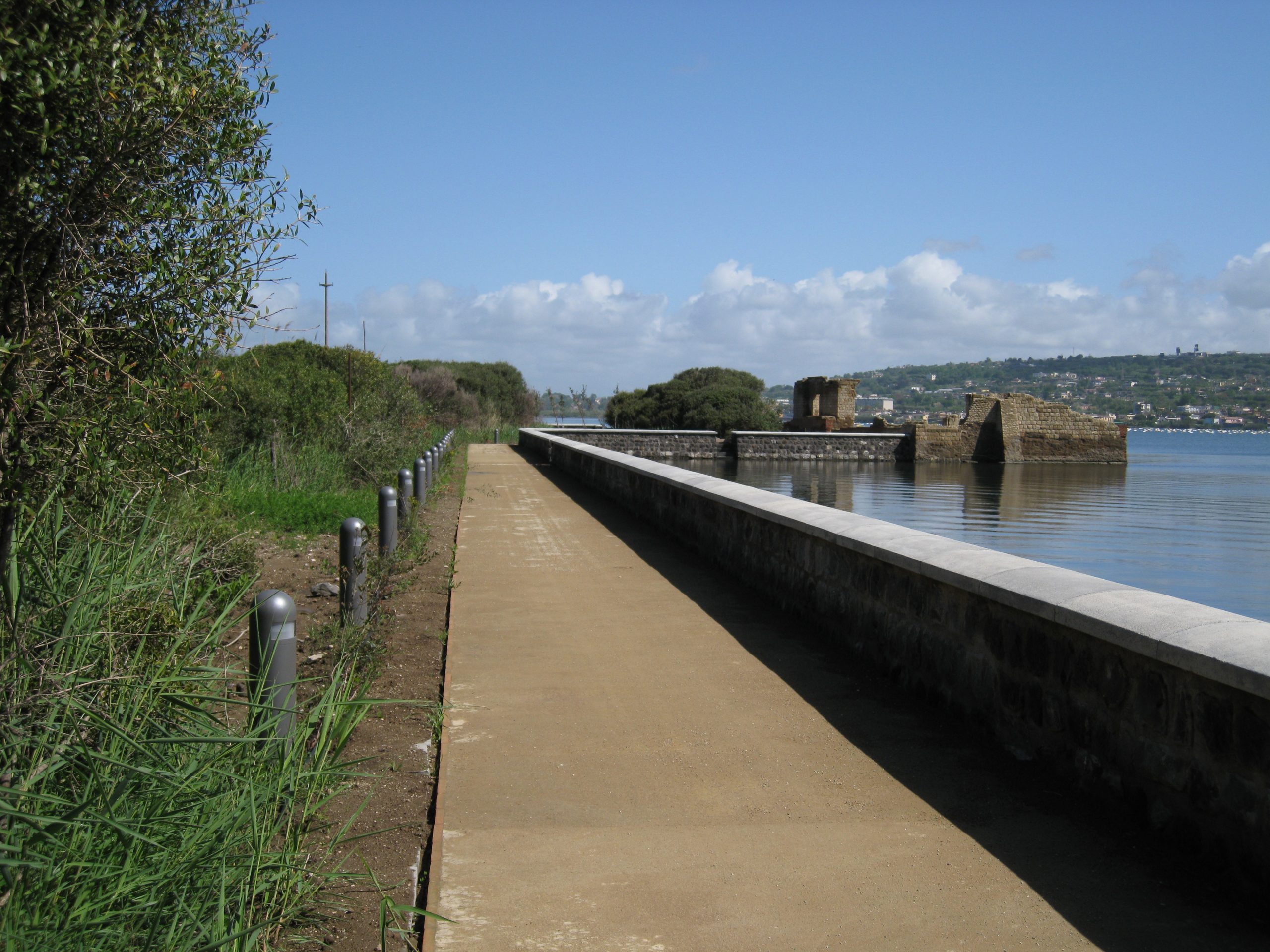 L’intervento consiste nella riqualificazione delle caratteristiche ambientali (vegetazione autoctona e protezione della fauna avicola) del sito, tra cui vanno incluse le opere architettoniche che ormai costituiscono l’ambiente insieme al lago, allo scopo di offrire un prodotto al pubblico, attraverso un percorso di fruizione a valenza culturale e paesaggistica, che costituisca una lettura del sito attraverso il contatto con le caratteristiche naturali e la valorizzazione dei manufatti, borbonici e non, presenti sul bordo lago.