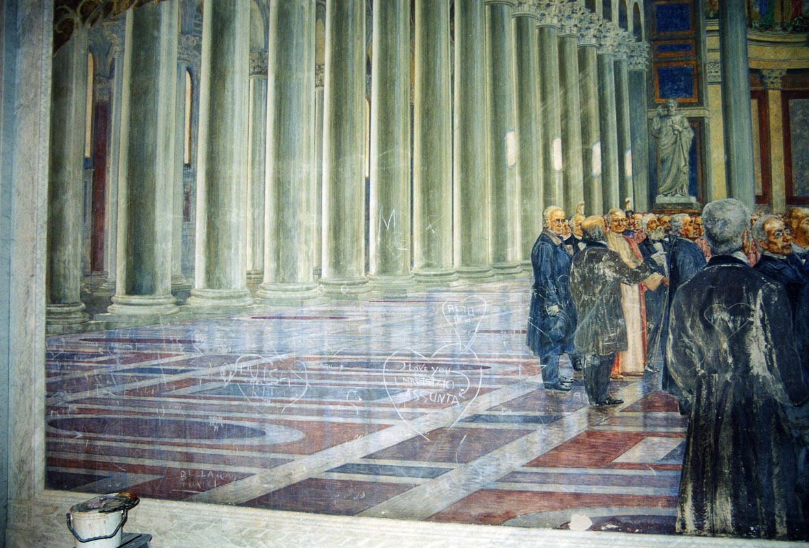 Preconsolidamento degli intonaci e delle superfici decorate per impedire la perdita della pellicola pittorica