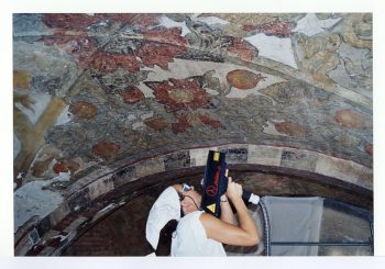 Restauro serramenti e vetrate Smontaggio del serramento seguito dal successivo restauro con la necessaria sostituzione di parti sia lignee che metalliche, integrazione anche estesa della vetrata a piombo, vetro temperato di sicurezza interno a rete esagonale in filo di rame antipiccione, rimontaggio del serramento stesso. Le superfici metalliche sono state trattate con passivanti e protettivi (Paraloid) mentre quelle lignee, previa pulitura del legno sono state trattate con due mani di impregnante e cera microcristallina.