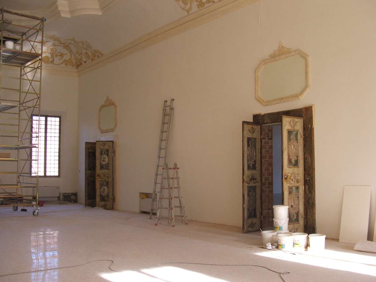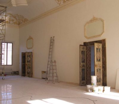Ripristino grandi spazi interni, ripristino degli scaloni principali, ripristino loggia e del terrazzo superiore lato est, ripristino della tipologia delle bucature esterne ed interne del grande androne passante del paino terra, riassetto dei volumi interni. L’intervento prevede quindi la realizzazione degli impianti tecnologici e delle opere di finitura interne ed esterne.